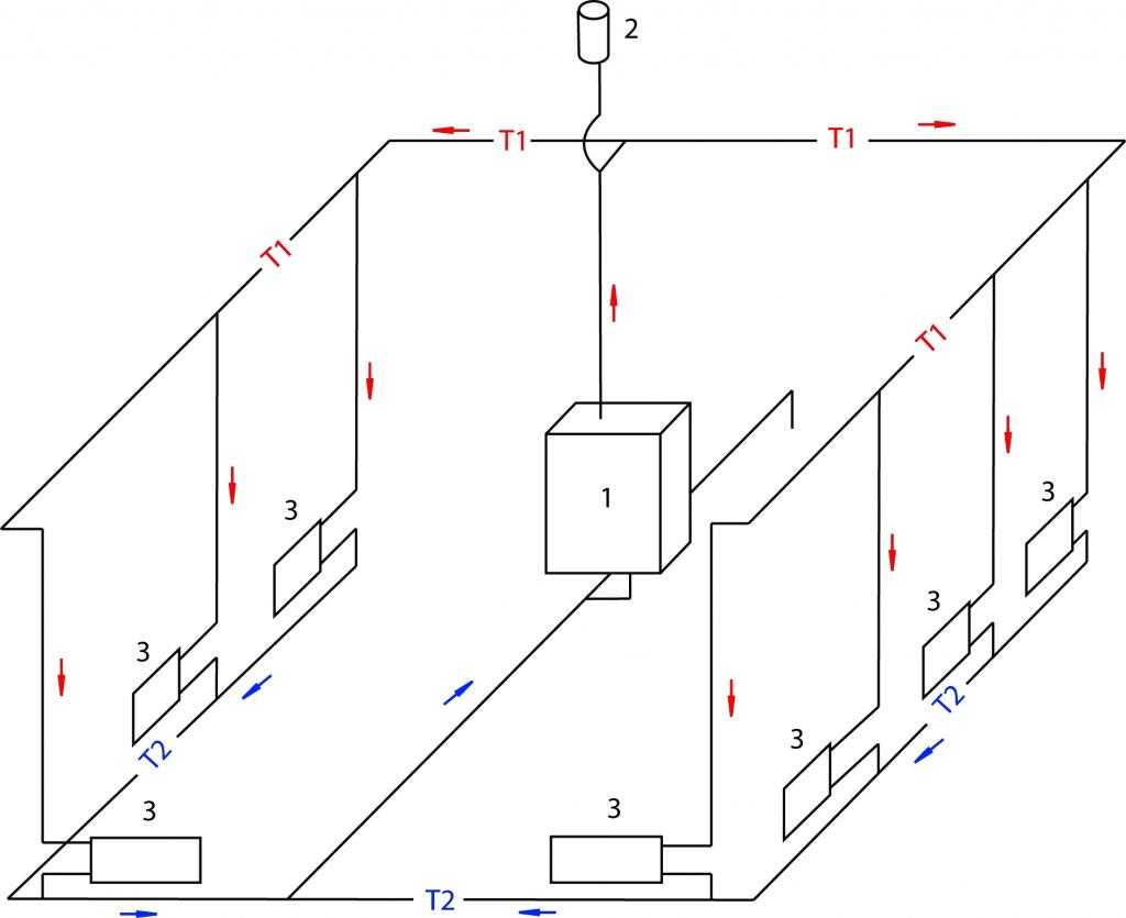 Schéma à deux tuyaux des systèmes de chauffage