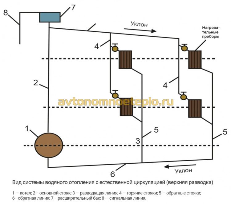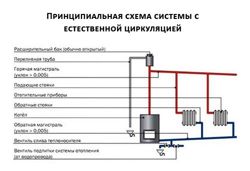 Système de chauffage à circulation naturelle : règles de l'appareil + analyse des schémas typesSystème de chauffage à circulation naturelle