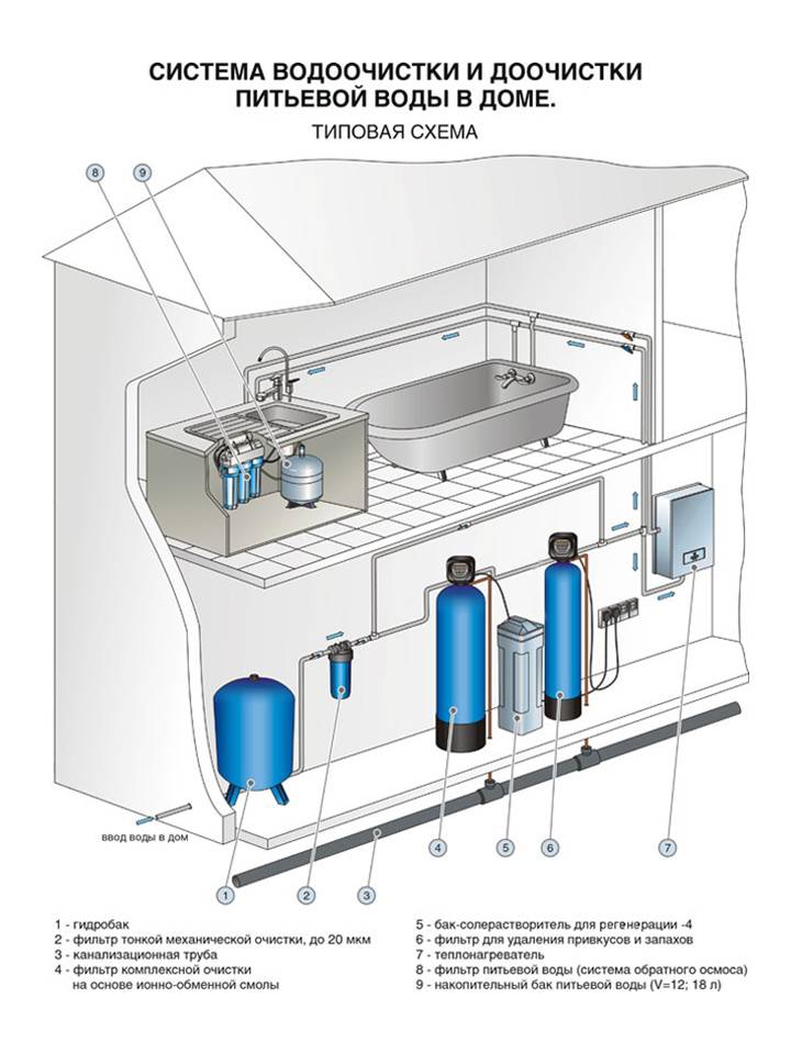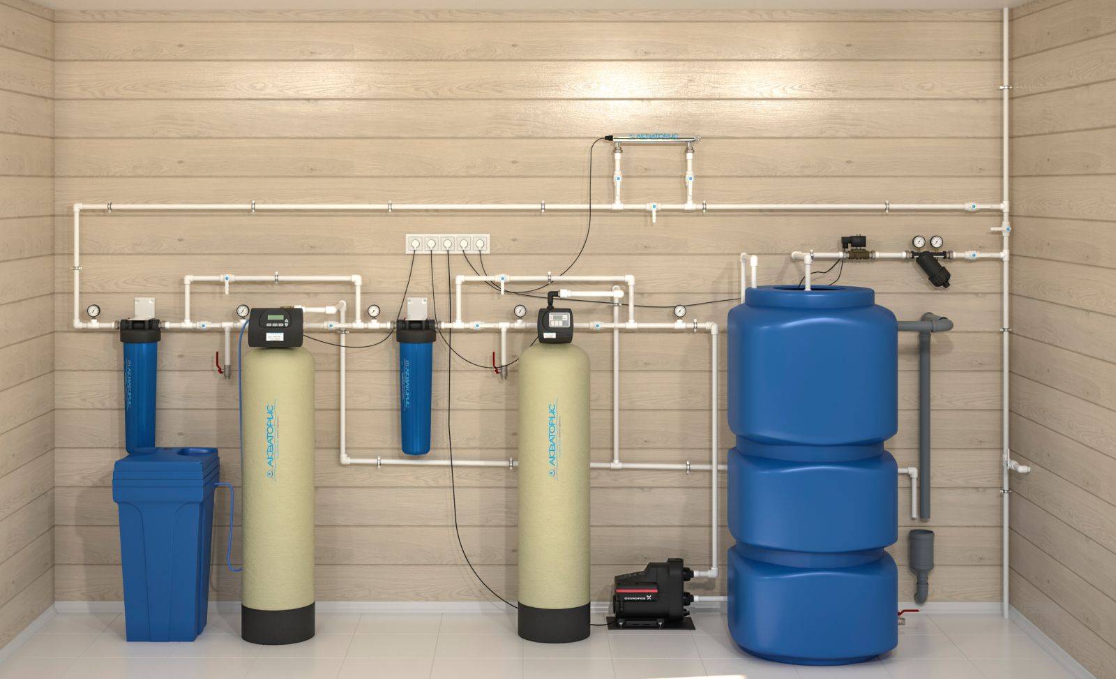 Bien entendu, une maison ou un chalet privé présente un grand avantage par rapport aux appartements lorsqu'il s'agit de créer un système de purification de l'eau, car une pièce séparée ou un espace isolé peut lui être attribué. Dans un appartement, l'espace est limité en taille et en agencement. Par conséquent, tous les éléments du système de nettoyage sont constamment en contact avec les résidents.