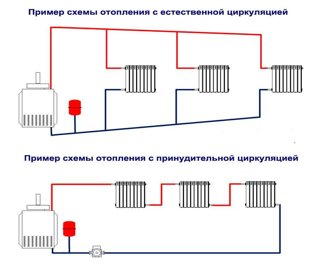 Il existe deux types de systèmes de chauffage - à circulation forcée et naturelle. Les systèmes à circulation forcée ne peuvent pas fonctionner sans pompe, avec une circulation naturelle, ils fonctionnent, mais dans ce mode, ils ont un transfert de chaleur inférieur. Cependant, moins de chaleur vaut toujours mieux que pas de chaleur du tout, donc dans les zones où l'électricité est souvent coupée, le système est conçu comme hydraulique (avec circulation naturelle), puis une pompe y est enfoncée. Cela donne une efficacité et une fiabilité élevées du chauffage. Il est clair que l'installation d'une pompe de circulation dans ces systèmes présente des différences.