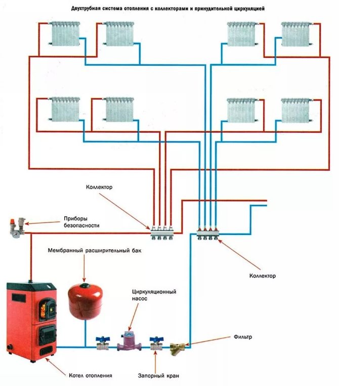 Comment sont agencés les systèmes de chauffage avec circulation par pompe: schémas d'organisation
