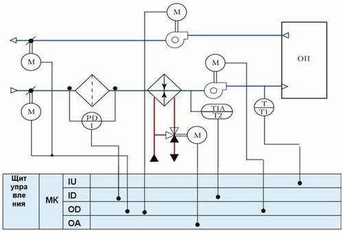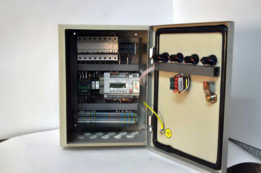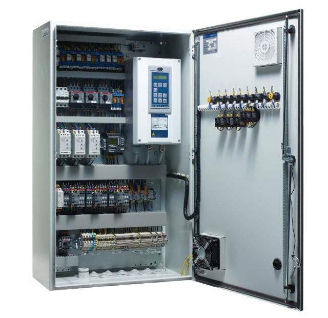 L'armoire de commande est conçue pour contrôler et coordonner le fonctionnement de tous les appareils inclus dans le système d'alimentation, d'extraction, d'alimentation et d'extraction, de ventilation d'urgence, en mode automatique ou manuel. De plus, les centrales peuvent fonctionner avec succès avec des systèmes de ventilation équipés de chauffe-eau et de refroidisseurs électriques ou à eau, de récupération et de recirculation des flux d'air. Les principales tâches résolues à l'aide d'une armoire de commande: