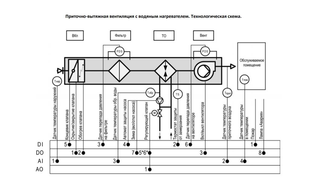 schéma de l'unité de commande pour la ventilation d'alimentation et d'extraction avec chauffage de l'eau