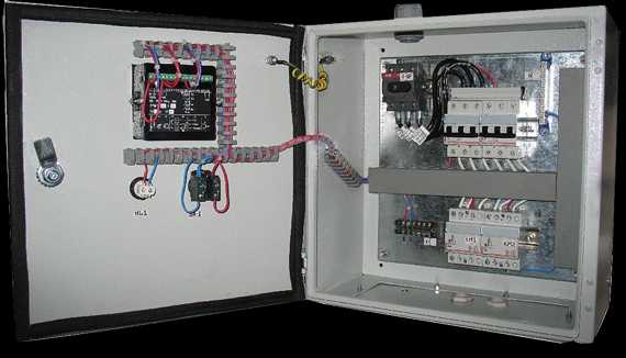 Rétablit l'alimentation des consommateurs lorsque la source d'alimentation principale est éteinte, en connectant une source d'alimentation de secours. En cas de perte de tension à la source principale, la machine éteindra l'interrupteur automatique de la source principale, et éteindra cette source après le temps fixé par la minuterie. Une fois la temporisation écoulée, le disjoncteur de la source de secours s'enclenchera. Lorsque l'alimentation est rétablie sur la source principale, la minuterie éteindra le disjoncteur de la source de secours après un temps défini et reconnectera la source d'alimentation principale à l'aide du disjoncteur. Pour contrôler le commutateur de transfert automatique, un relais de commande programmable est utilisé, dans lequel toute la logique de fonctionnement du circuit ATS est programmée. Le relais de commande programmable est équipé d'un écran à cristaux liquides, qui affiche des informations (sous forme de textes d'affichage en russe) sur l'état actuel, les situations de commutation et d'urgence dans le circuit d'alimentation, dispose d'une mémoire non volatile, donc même si l'alimentation auxiliaire du circuit ATS est complètement hors tension, le programme est enregistré même lorsque l'alimentation est rétablie, le circuit continue de fonctionner en fonction de l'état actuel du circuit d'alimentation.
