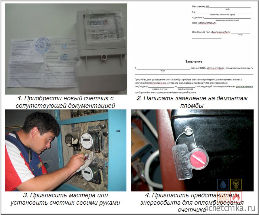 Une demande pour la nécessité de remplacer le compteur électrique est enregistrée auprès de l'entreprise, il faudra plusieurs jours pour qu'elle soit inscrite au registre de l'État. Après cela, vous devez obtenir un certificat de la compagnie d'énergie, selon lequel vous pouvez acheter un nouveau compteur ou vous pouvez l'acheter auprès d'une société de services.