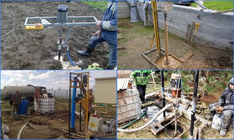 Les méthodes de forage de puits d'eau à faire soi-même sont manuelles, mais diffèrent peu des méthodes mécaniques. Les principales différences sont les performances et la profondeur. Cependant, ils forent même avec un rinçage. Souvent, ils utilisent une perceuse de jardin, utilisent la méthode de la tarière, d'autres types de perceuses, moins souvent la méthode de la corde de choc.