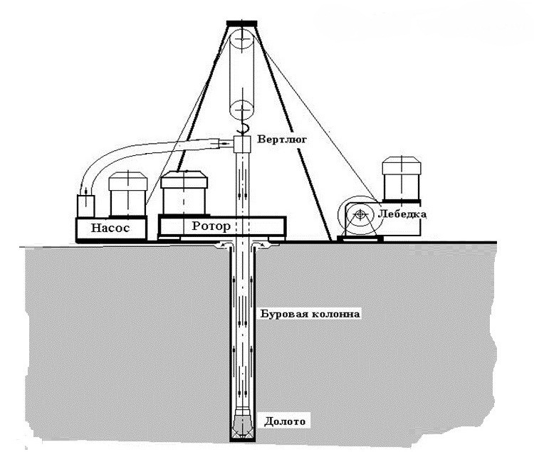 Deux processus principaux sont combinés ici - il s'agit de la destruction directe des roches par un outil de forage et du lessivage des fragments de sol forés avec un fluide de travail. Autrement dit, la roche est affectée par le forage et la pression de l'eau.