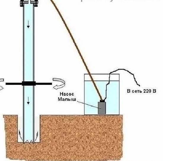 Ensuite, lorsqu'un aquifère est trouvé, l'eau sale doit être pompée pour déterminer s'il y a suffisamment d'eau dans cette couche. A quoi sert une pompe manuelle ou submersible ? Si, après avoir pompé plusieurs seaux d'eau sale, le nettoyage n'est toujours pas parti, il est alors nécessaire de forer davantage vers un noyau plus volumineux.