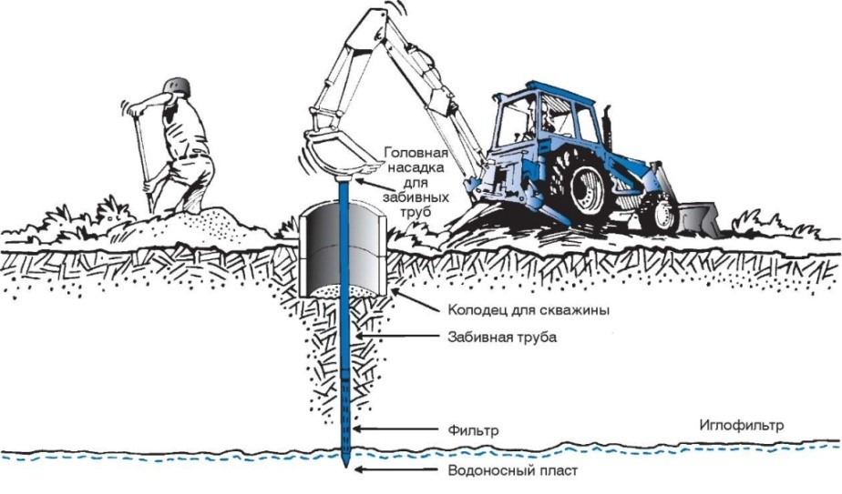 La méthode "aiguille" pour le puits abyssin : lorsque le tuyau est abaissé, le sol est compacté, il n'est donc pas projeté à la surface. Pour pénétrer dans le sol, une pointe acérée en ferroalliage est nécessaire. Vous pouvez fabriquer un tel appareil à la maison si l'aquifère est peu profond.