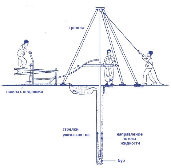 La méthode de la corde de choc est la plus simple. Ils forent sans l'aide d'équipements lourds, à l'aide d'une installation spéciale, composée de :