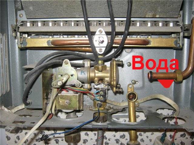 Si de l'eau a commencé à s'écouler de la colonne, la raison peut être que des fistules se sont formées sur les tuyaux en cuivre. Afin de trouver une fuite, vous devez inspecter soigneusement l'échangeur de chaleur avec l'eau coupée. Certaines fistules sont faciles à trouver, vous verrez comment l'eau sort de ces endroits. De petits trous peuvent être vus à partir des taches vertes et de la rouille autour.