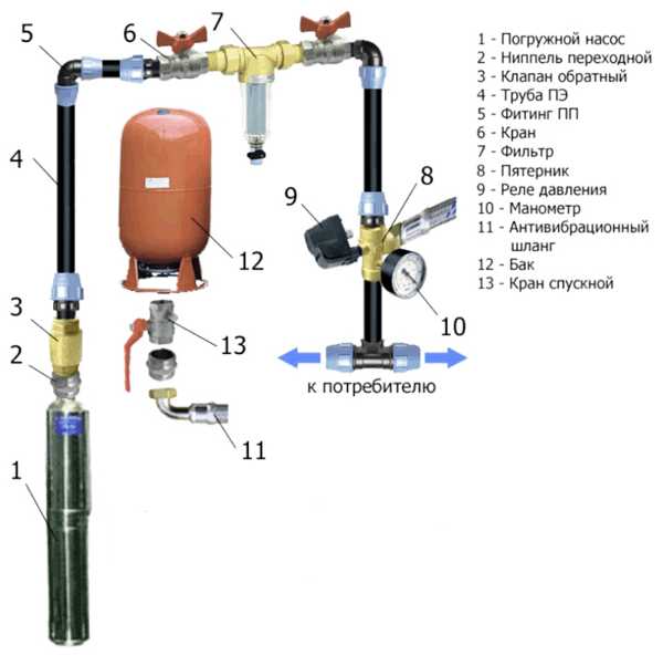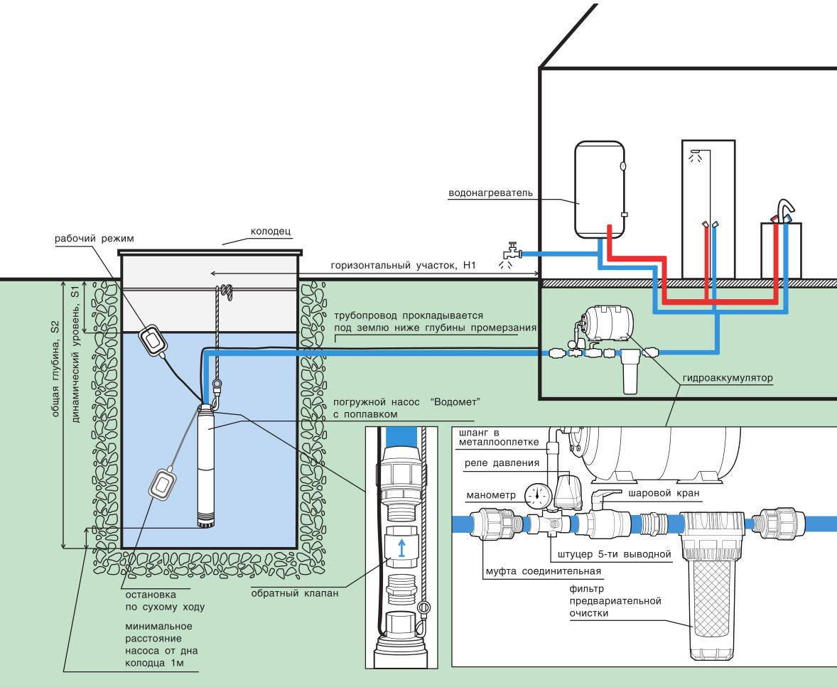 À quoi d'autre devez-vous faire attention lors du choix? Nous devons connaître exactement la distance entre le puits et la maison et le volume de liquide pompé, qui dépendra du volume total du réseau d'alimentation en eau et de la consommation d'eau maximale possible à un moment donné. Un exemple banal : on ouvre le robinet le plus proche du point d'entrée du bâtiment - on obtient une bonne pression, on ouvre le second - la pression chute, et au point éloigné le débit d'eau sera le plus faible. Les calculs ici, en principe, ne sont pas compliqués, vous pouvez les faire vous-même à l'aide d'une calculatrice en ligne, ou simplement en étudiant les instructions du fabricant