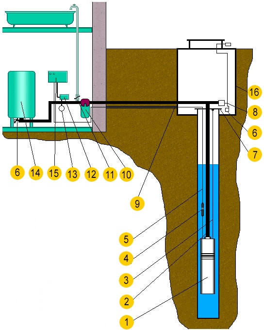 - Un puits abyssin peut être aménagé dans la maison en plaçant un équipement de pompage dans le sous-sol ou la buanderie.