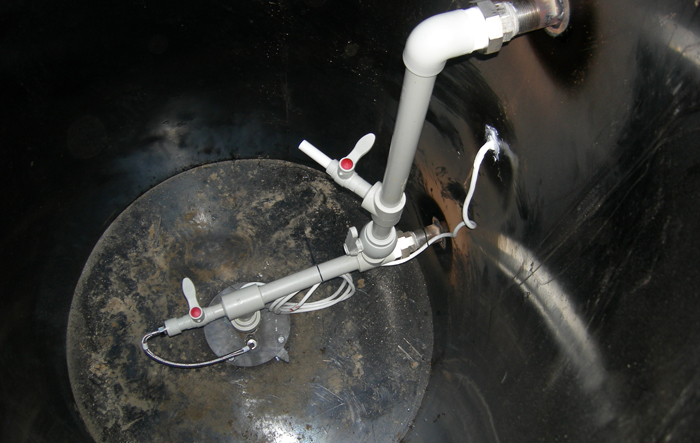 - L'arrêt de l'équipement de pompage entraîne une chute de pression dans le pipeline. Lorsque la marque atteint 0,6-0,7 bar, la vanne de vidange est activée et draine naturellement le fluide restant de la canalisation vers le puits.