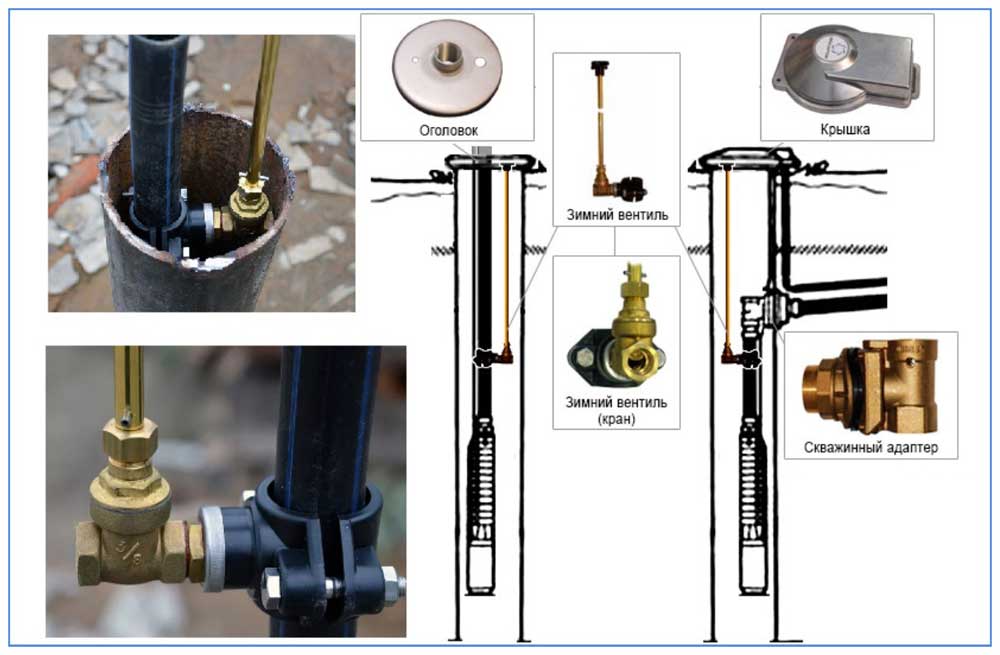Un adaptateur est un dispositif utilisé pour assurer une connexion étanche entre un puits et des conduites d'eau. Si un appareil similaire est installé, ce type de puits est également utilisé pendant la saison froide. Mais dans ce cas, les branches qui mènent à la maison doivent être posées dans une tranchée, à une profondeur d'au moins 1,6 m.En même temps, le réservoir hydraulique d'un tel système et l'unité d'automatisation sont installés à l'intérieur.