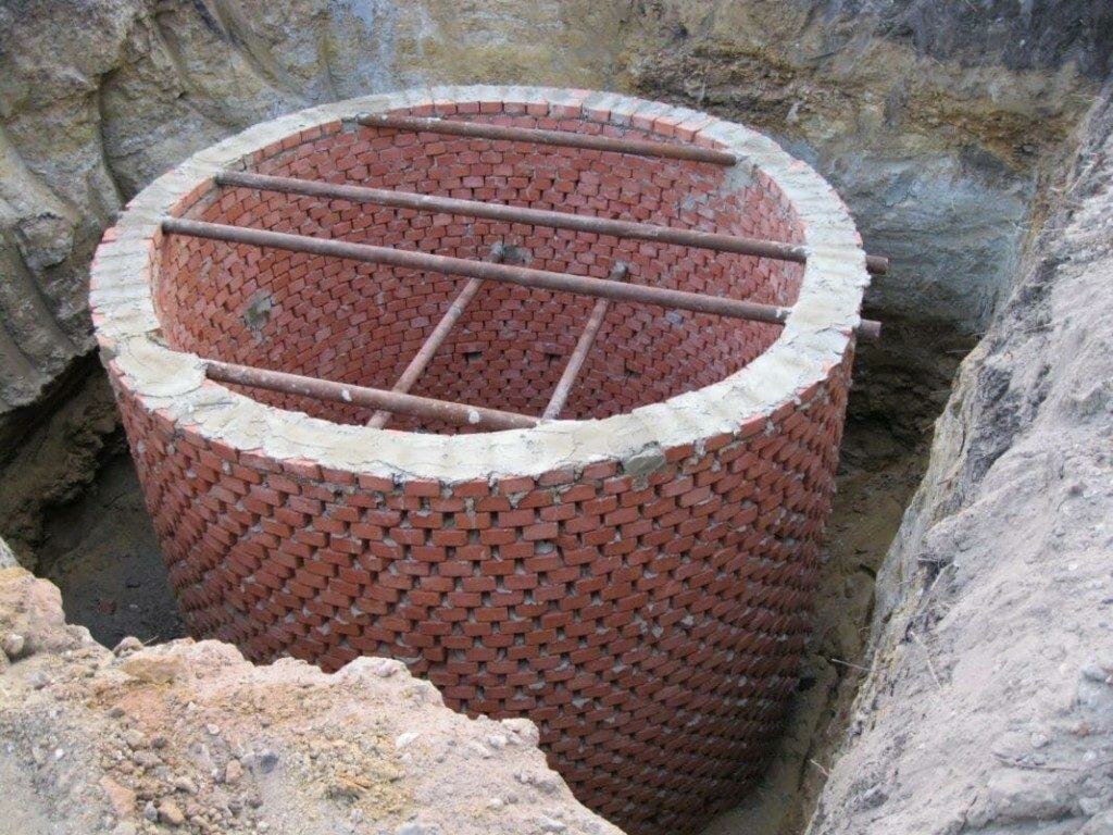 Au fond de la fosse, vous pouvez construire une petite fondation faite de briques ou de pierres cassées. Les parois de la fosse sont disposées en demi-brique pour économiser du matériel, il est souhaitable de laisser de petits espaces entre les extrémités des briques pour filtrer et évacuer les eaux usées dans le sol.