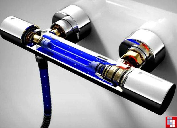 Sur la vidéo - le principe de fonctionnement d'un mélangeur avec thermostat:
