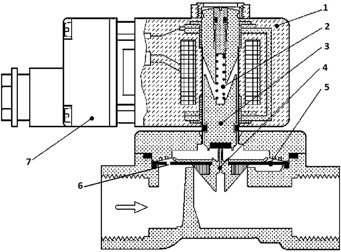 Autrement dit, en position statique, à condition que la bobine soit hors tension et que l'appareil soit en position fermée/ouverte (selon le type), le piston est en liaison étanche avec le siège de soupape. Lors de la mise sous tension, la bobine transmet une impulsion à l'actionneur et la tige s'ouvre. Ceci est possible car la bobine génère un champ magnétique qui, à son tour, affecte le piston et y est aspiré.