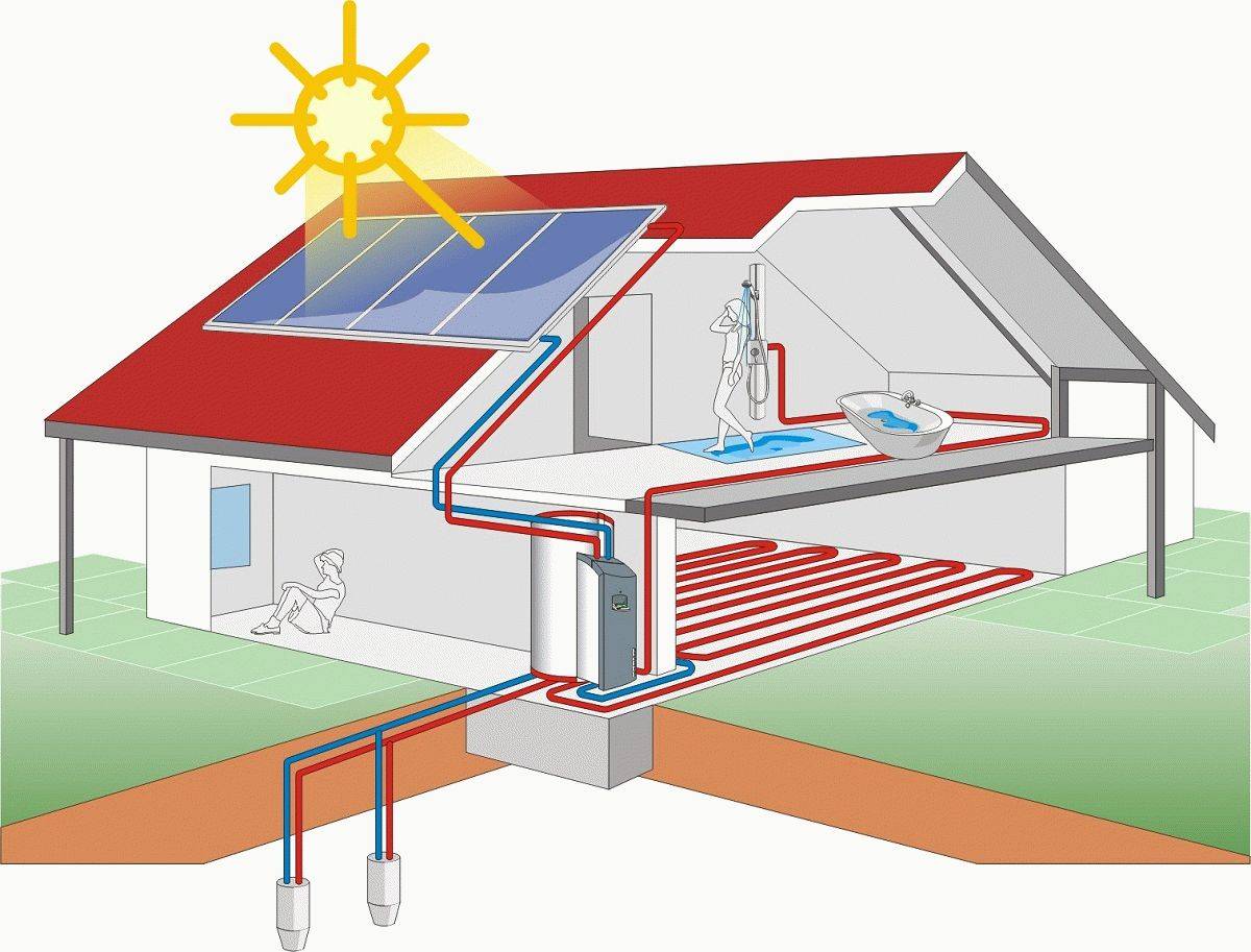 Une installation géothermique, en tant qu'innovation dans le chauffage domestique, a la conception suivante : une pompe à chaleur est installée dans la maison, qui sera entièrement responsable du pompage du liquide de refroidissement. Dans la mine, située près de la maison, il est nécessaire d'abaisser l'échangeur de chaleur. Grâce à cet échangeur de chaleur, l'eau souterraine sera transférée à la pompe à chaleur. En traversant la pompe, ils perdront une partie de leur chaleur.C'est parce que la pompe prendra de la chaleur et l'utilisera pour chauffer la maison.