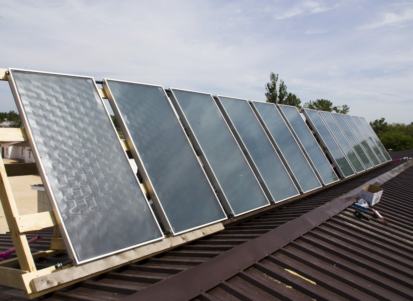 Un système solaire est un appareil qui fait partie d'un système de chauffage.Il s'agit d'une grande boîte calorifugée dans laquelle le liquide de refroidissement est intégré. Un tel appareil, avec des piles, est fixé sur un écran surélevé faisant face au luminaire. Il est également possible de poser simplement les éléments chauffants sur la pente du toit.