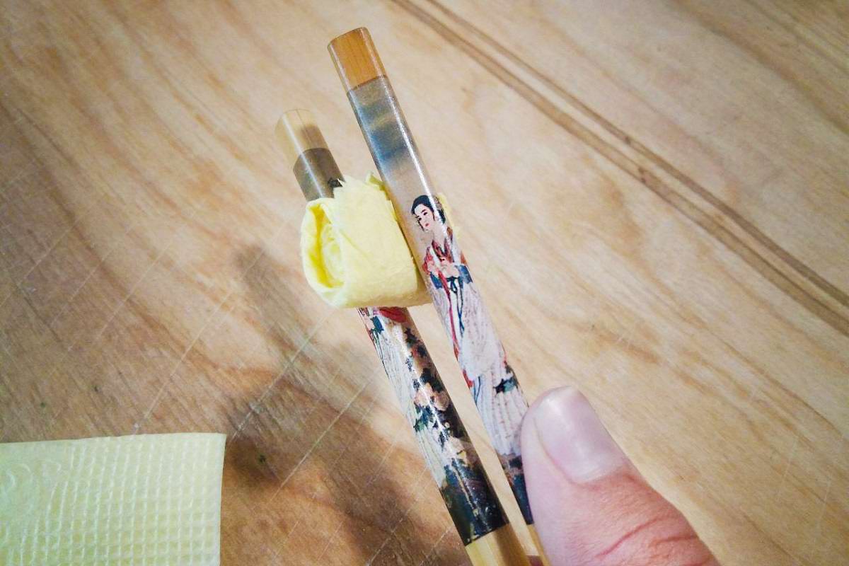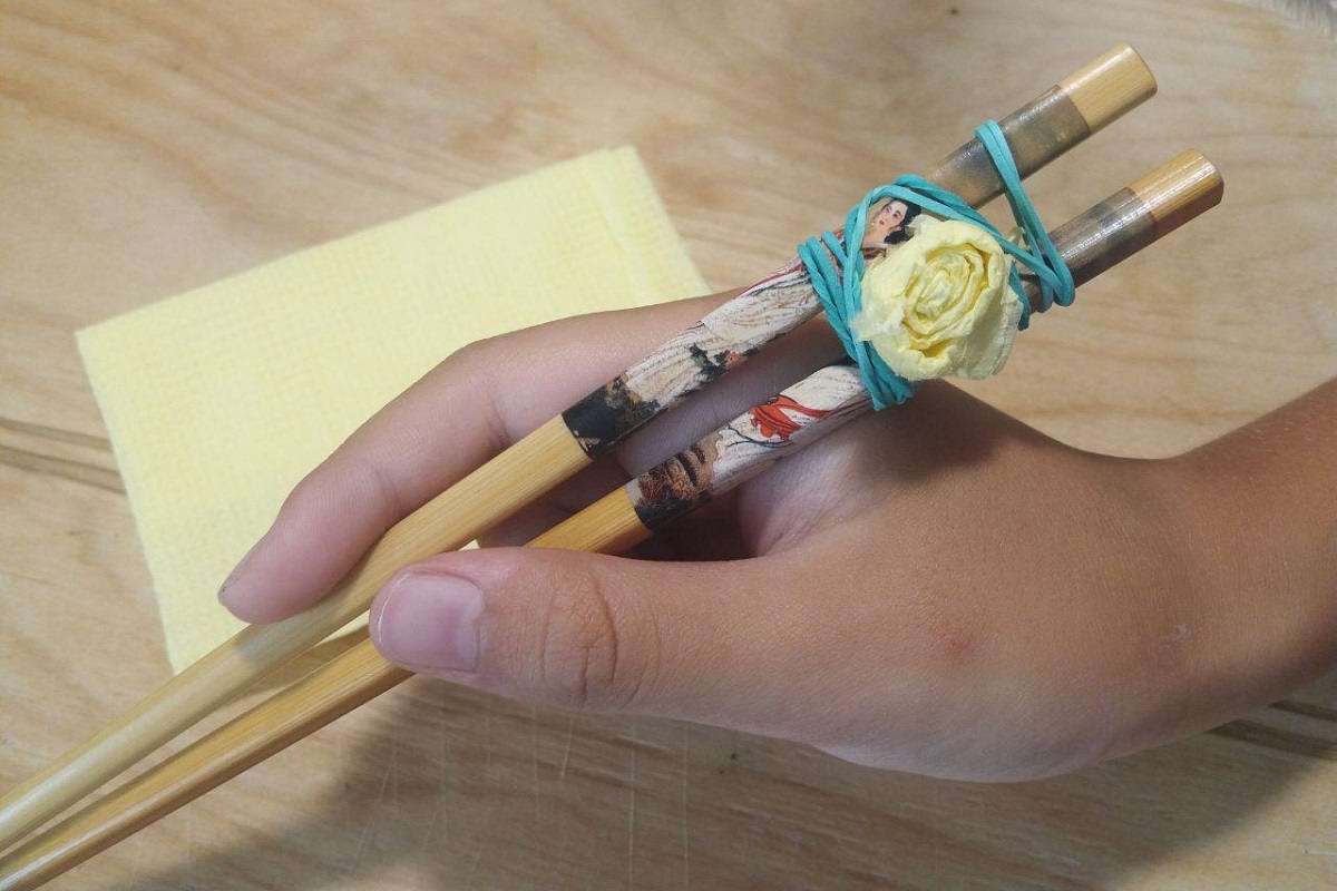 3. En général, les pinces sont prêtes, mais pour qu'elles ne bougent pas beaucoup, nous les enveloppons d'un élastique afin que la distance entre les cuillères soit petite.