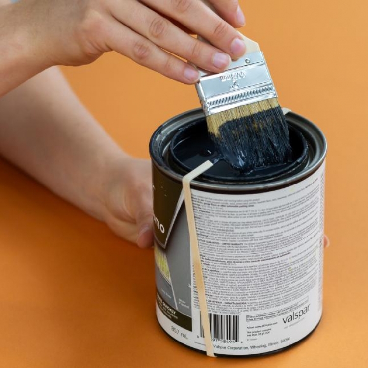 Moins il reste de peinture en excès sur votre pinceau, moins il y aura de gouttes sur vos mains, vos vêtements et les objets environnants. Par conséquent, étirez une bande élastique de taille appropriée sur la boîte ouverte et retirez la peinture du pinceau avec.