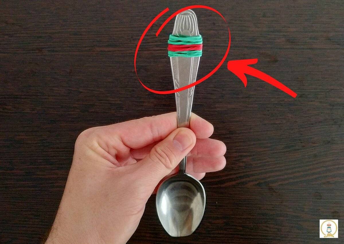 - Cuillère antidérapante. Enveloppez les cuillères avec des élastiques. Lorsque vous cuisinez dans un récipient profond, votre article restera immobile et ne vous échappera pas.