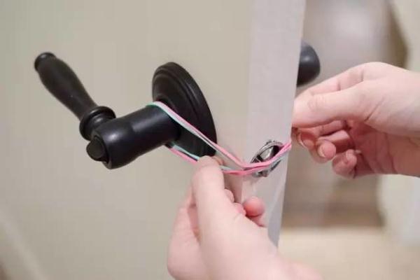 - En portant une gomme cléricale en croix sur les poignées des deux côtés de la porte, vous pouvez bloquer la languette de la serrure et la porte cessera de claquer.