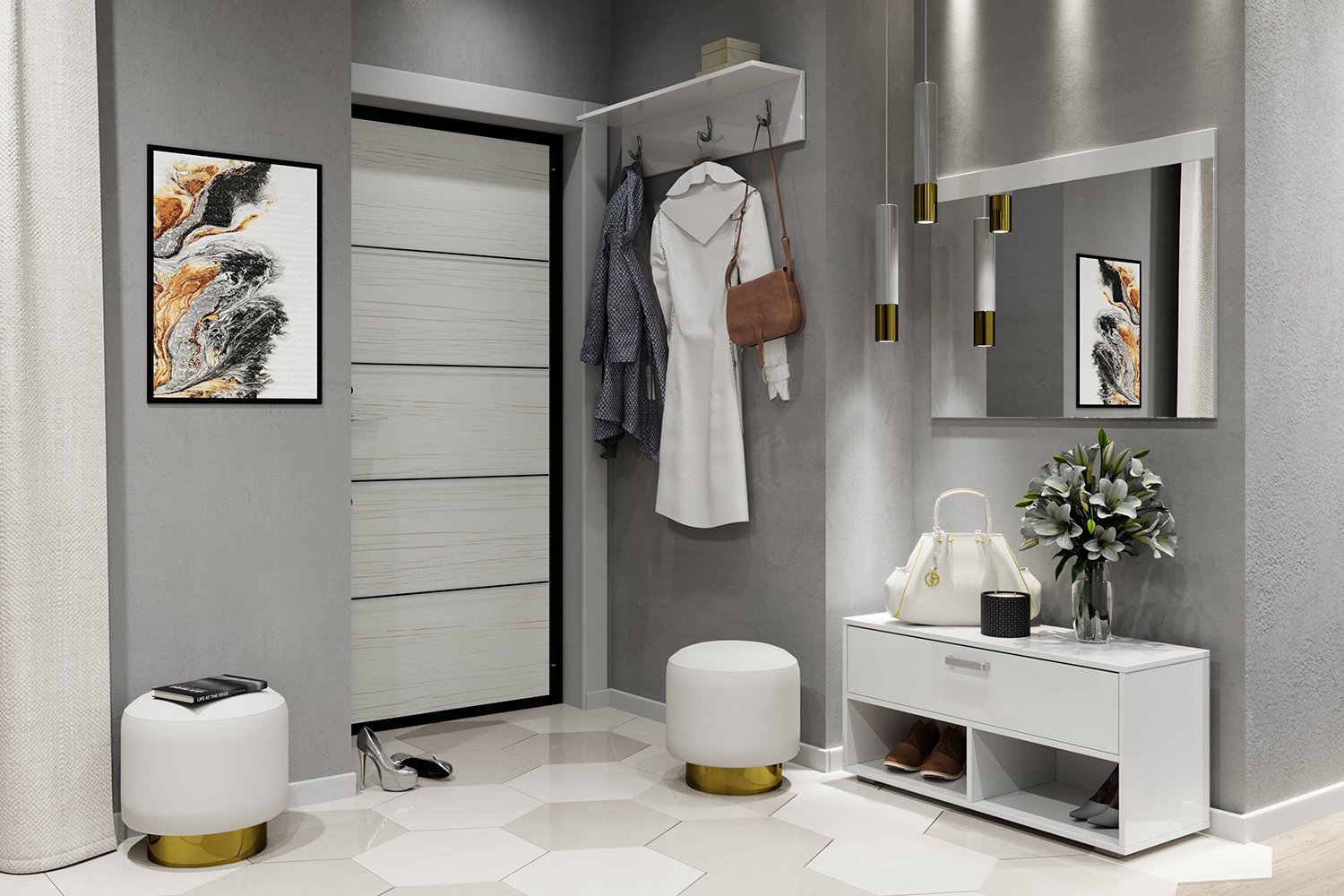 - Hall d'entrée élégant: conception des couleurs de la pièce