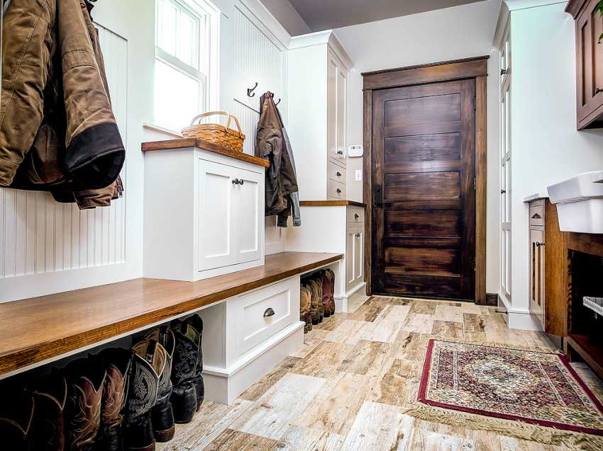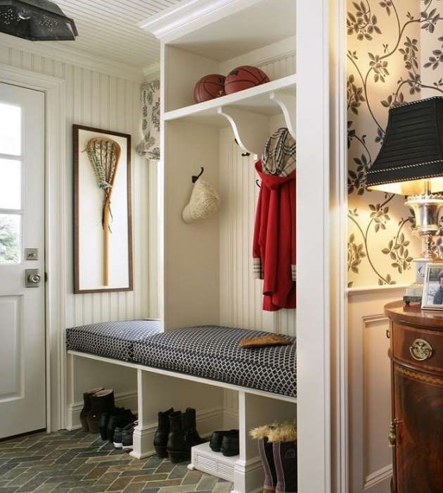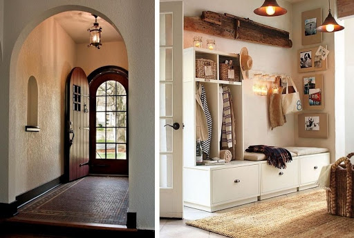 Dans de nombreux villages, il existe encore des maisons de l'ancien plan avec de petits couloirs froids en forme de vestibule. Ils remplissent une fonction auxiliaire, ici vous pouvez enlever vos vêtements d'extérieur et vos chaussures. Pour décorer une telle pièce, des teintes naturelles doivent être utilisées, des carreaux sont généralement posés au sol et du plâtre décoratif est appliqué sur les murs. Des meubles simples sont installés dans le vestibule, en règle générale, ce sont des cintres ordinaires et des étagères pour chaussures.