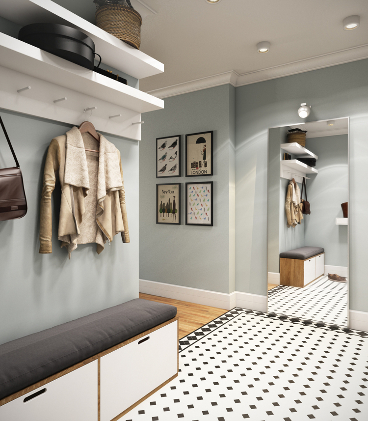 Le couloir étant l'endroit le plus sale de l'appartement, les matériaux utilisés ici doivent être lavables. Si la famille a des enfants et des animaux domestiques, la finition doit être aussi résistante que possible.