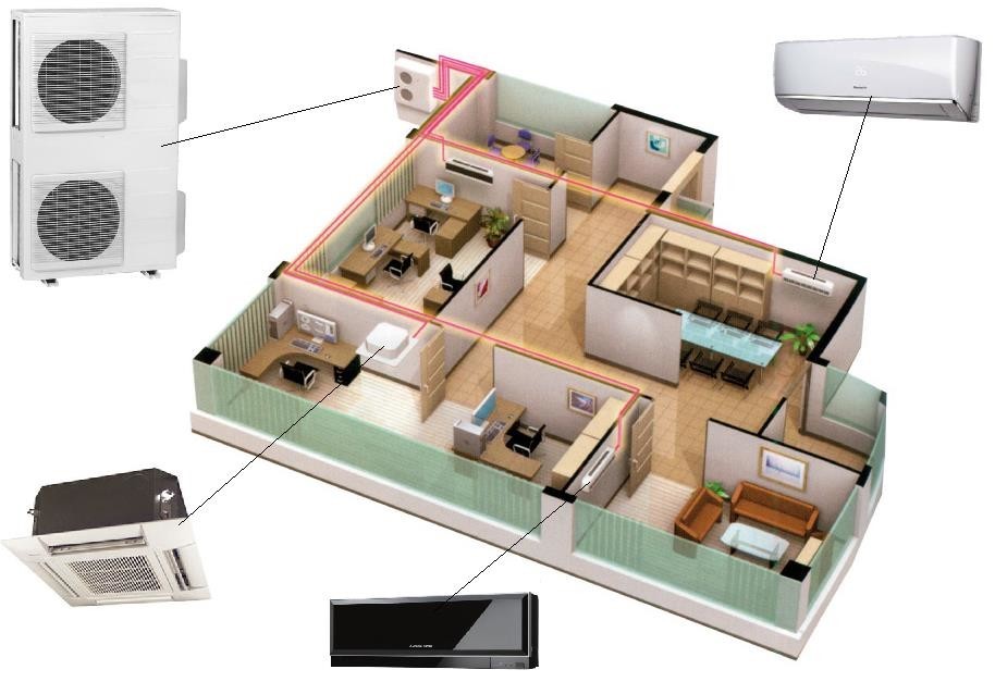 La présence d'une seule unité extérieure ne gâche pas l'apparence du bâtiment et est plus facile à entretenir. Cette technique doit être utilisée pour refroidir l'air de plusieurs pièces ou bureaux à la fois.
