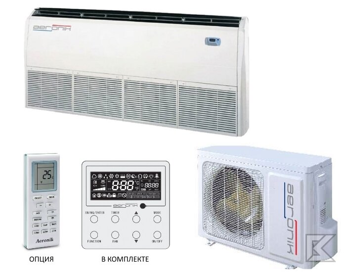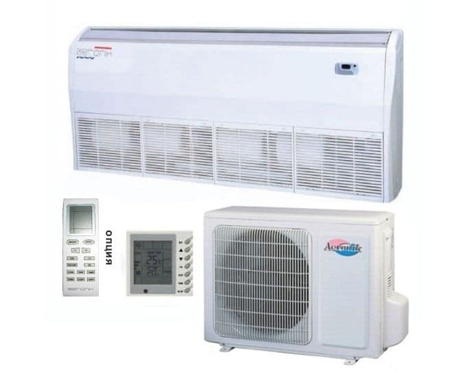- Plafond. Ils se distinguent par leur petite hauteur, fine, qui leur permet d'être installés dans des pièces à plafond bas. L'unité intérieure d'un tel climatiseur est compacte, l'air refroidi est fourni dans une direction horizontale et le niveau de bruit émis est assez faible.
