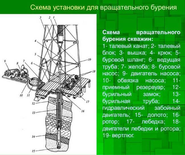 Pour le forage de puits artésiens, une méthode rotative est utilisée. Cette méthode est la plus justifiée économiquement, écologiquement et donne des puits de différentes profondeurs et diamètres dans des sols meubles avec des inclusions rocheuses.