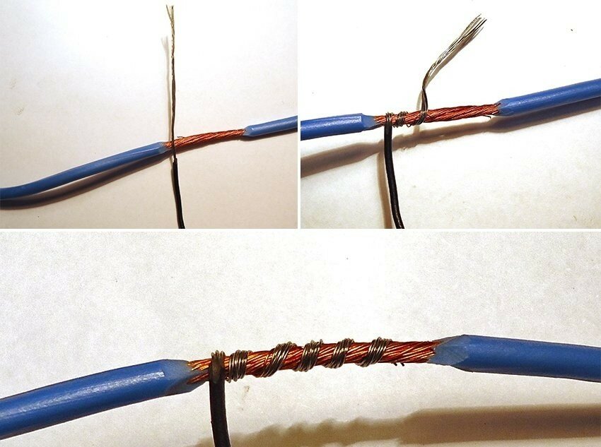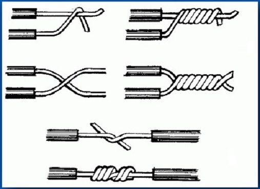 Pour connecter deux fils ensemble, leur torsion en série peut être utilisée, pour laquelle chaque fil connecté est "enroulé" sur l'autre.
