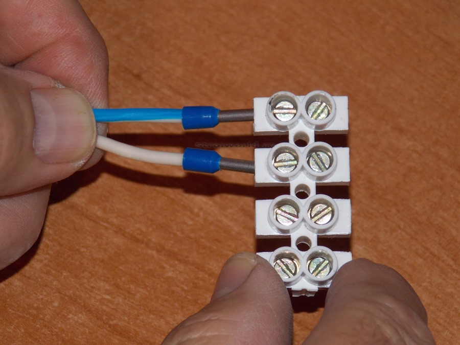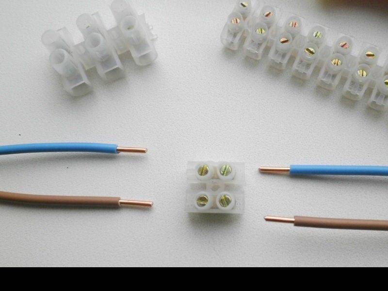 L'un des borniers les plus courants, car ils sont vendus dans tous les magasins. Dans ce cas, les câbles sont connectés à l'aide de deux vis situées à l'intérieur du bornier.