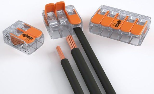 Et si vous voulez des pinces pour connecter des fils réutilisables, utilisez des borniers à leviers. Ils ont soulevé le levier et ont mis le fil dans le trou, puis l'ont fixé en appuyant dessus. Si nécessaire, le levier est à nouveau relevé et le fil dépasse.