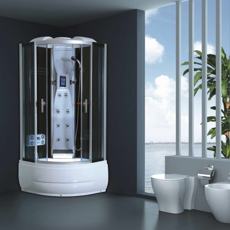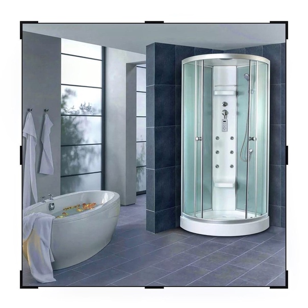 Une salle de bain spacieuse peut permettre l'installation d'un caisson double de la célèbre marque SSWW. La hauteur de levage de la structure BU108A n'est que de 15 cm, la paroi arrière est creuse sans joints en acrylique renforcé. Pour un séjour confortable, 2 assises et étagères sont installées à l'intérieur. La fonctionnalité étendue offre non seulement une douche tropicale, mais un hydromassage du dos, des jambes, de l'ozonation, de la chromothérapie.Une sécurité élevée est assurée par la protection contre la surchauffe, le contrôle de la température.