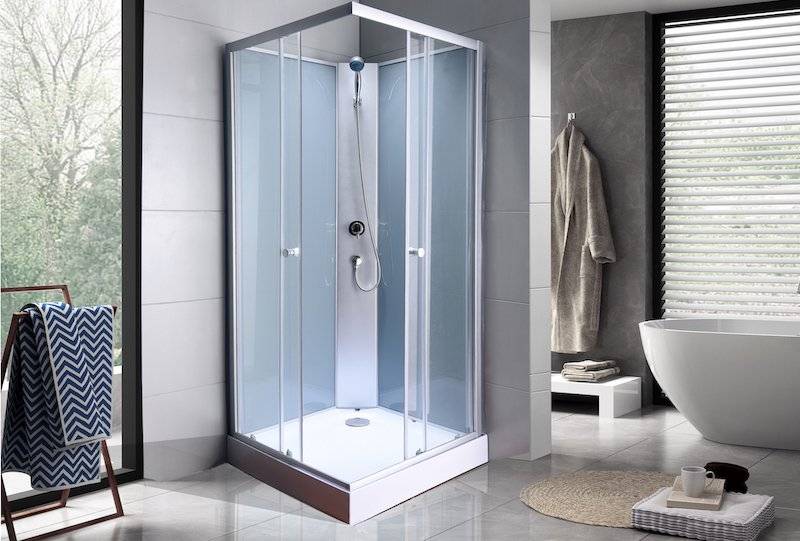 Lors de l'achat d'une cabine de douche, il faut tenir compte du fait qu'elle doit mesurer au moins 0,8 × 0,8 m, sinon elle ressemblera à un casier dans une bouteille.