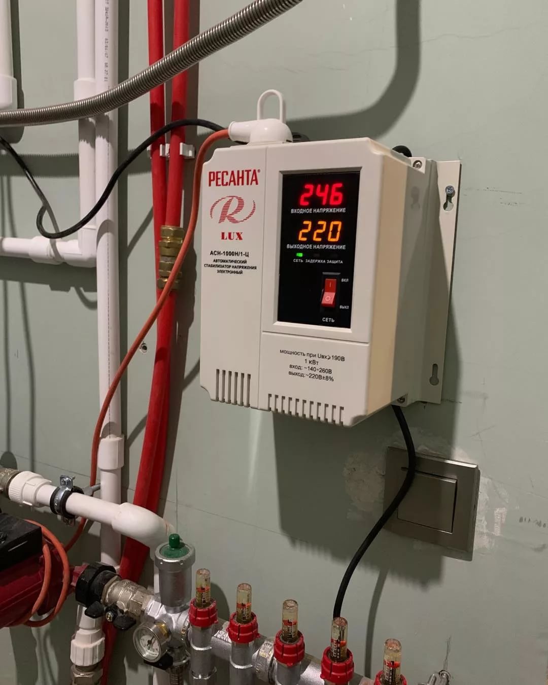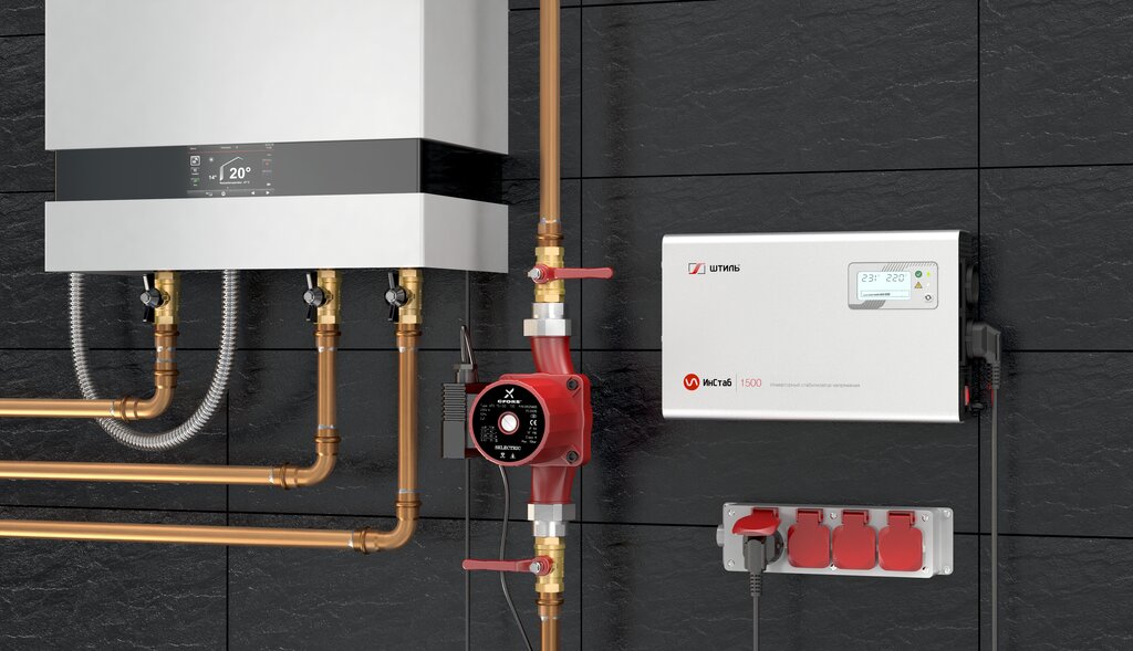 Un stabilisateur de tension connecté à la chaudière à gaz corrige la tension et la fréquence du courant, permettant à l'équipement de fonctionner sans surcharge et le protégeant de l'épuisement