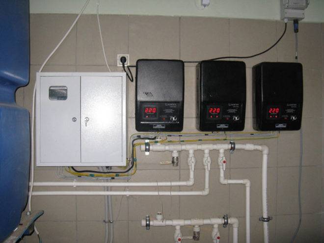 En fait, connecter le stabilisateur est très simple. Une chaudière à gaz est connectée à l'équipement, et elle est simplement connectée au réseau. Si vous devez installer plusieurs stabilisateurs monophasés en même temps, par exemple, dans le cas où trois phases entrent dans la pièce, vous ne pouvez pas les brancher sur une seule prise. Ensuite, le premier, lors de la commutation, créera des interférences sur le réseau et forcera l'autre à basculer. Ce processus est pratiquement sans fin. Ainsi, une prise doit être préparée pour chacun des appareils.