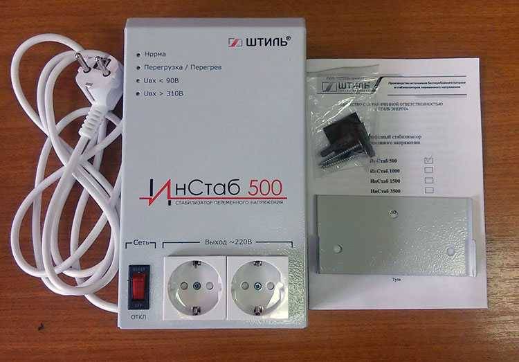 Les stabilisateurs de tension muraux sont très pratiques. Les appareils sont compacts, résistants aux dommages mécaniques, mais leur coût est légèrement supérieur à celui des appareils au sol.