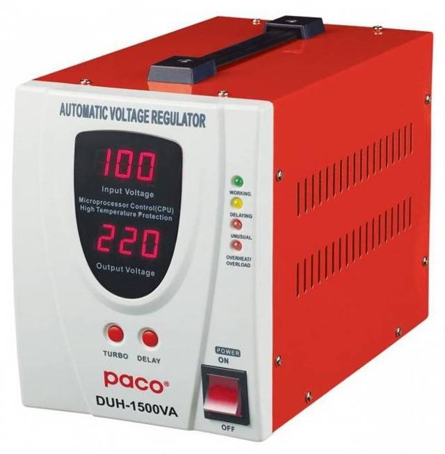Woltron PCH-1500 - utilisé exclusivement pour les réseaux monophasés. Stabilise la puissance d'entrée de 100 V à 280 V. Prix - 4000 roubles.