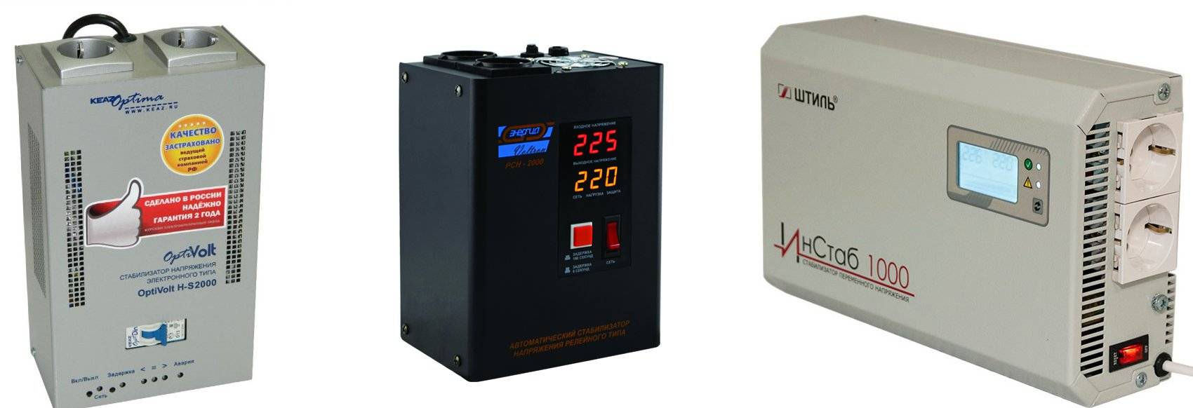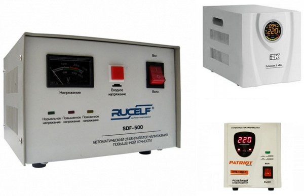 Il existe plusieurs types de stabilisants. Ceux-ci incluent des dispositifs de type électromécanique, relais et système. Le premier type se caractérise par une grande précision, mais se caractérise par une vitesse plutôt lente. Les régulateurs de relais sont assez rapides, mais un peu bruyants. Les stabilisateurs de type système sont silencieux, précis, mais assez chers.