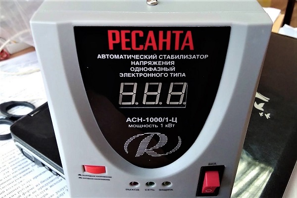 - Resanta ACH-500/1-Ts. Un appareil de type relais avec une puissance de 500 W et une tension d'entrée de 160 ... 240 V. Les produits de la marque Resanta ont deux variantes de conception. Le temps de réponse est de 7 ms, il dispose de quatre niveaux de réglage et d'une protection intégrée contre la surchauffe, les courts-circuits, la haute tension.Se connecte à une prise mise à la terre.