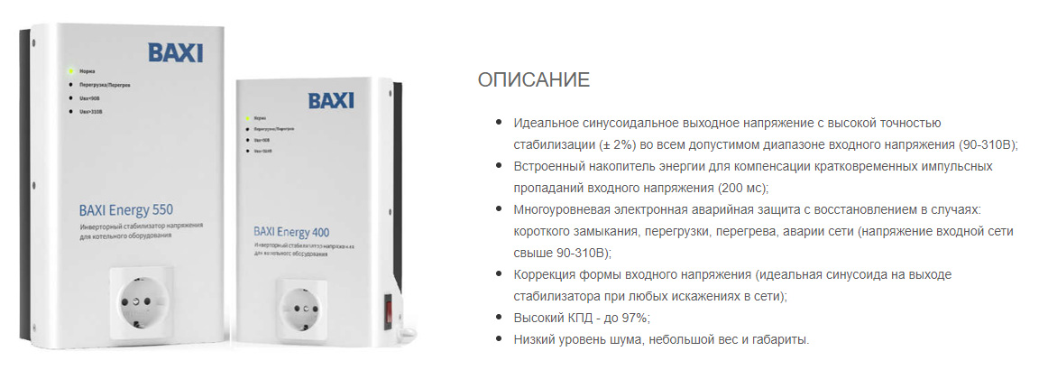 C'est le meilleur stabilisateur de cette catégorie, qui est optimal pour protéger les chaudières à gaz et le fonctionnement ininterrompu des systèmes de chauffage. L'impact négatif des fluctuations de tension secteur sur l'électronique connectée peut être évité grâce au filtre intégré, qui égalise le signal d'entrée à une vitesse de 350 V/s, tandis que l'erreur ne dépasse pas 4 %.