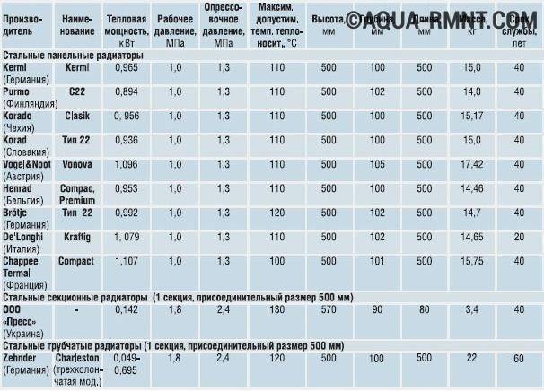 - Pression (de travail) - une moyenne de 6-10 bar (pour les radiateurs à panneaux) et 8-15 bar (pour les radiateurs tubulaires).