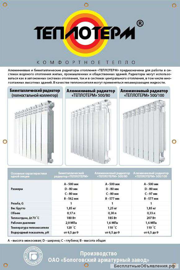 - Dimensions des radiateurs de chauffage bimétalliques : hauteur
