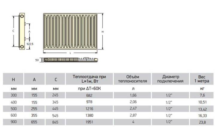 | Korado Radik type 11 L - 300 | 355 | 1800 |
