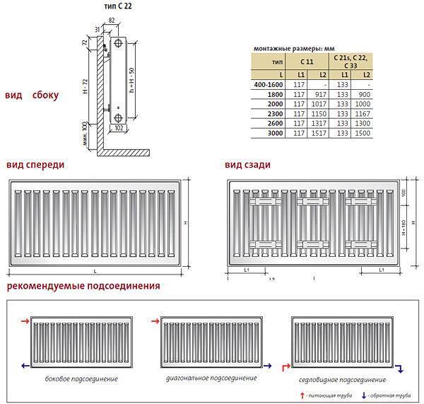 L'installation de ces appareils de chauffage n'est pas très compliquée. De plus, il est très pratique de pouvoir choisir un radiateur de type panneau avec raccordement à la fois par le côté et par le bas. Dans ce dernier cas, les tuyaux peuvent être cachés sous le sol et le capteur de température est connecté directement au radiateur. Et les panneaux du radiateur lui-même peuvent être connectés en série ou en parallèle - les deux types de modèles sont disponibles à la vente.